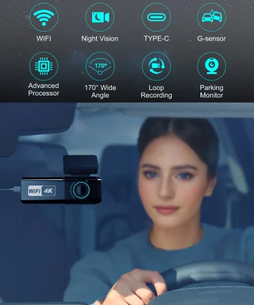 Aprilboy 4K WIFI Dash Cam 2160P Car DVR Support front & rear lens Auto Car Camera with Night Vision G-Sensor 24H Parking Monitor