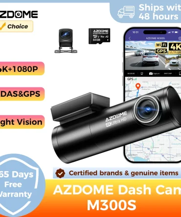 AZDOME Dash Cam M300S 4K+1080P Dual Dash Car Camera Built-in WiFi GPS ADAS Car DVR 24H Parking Mode Night Vision Black Box