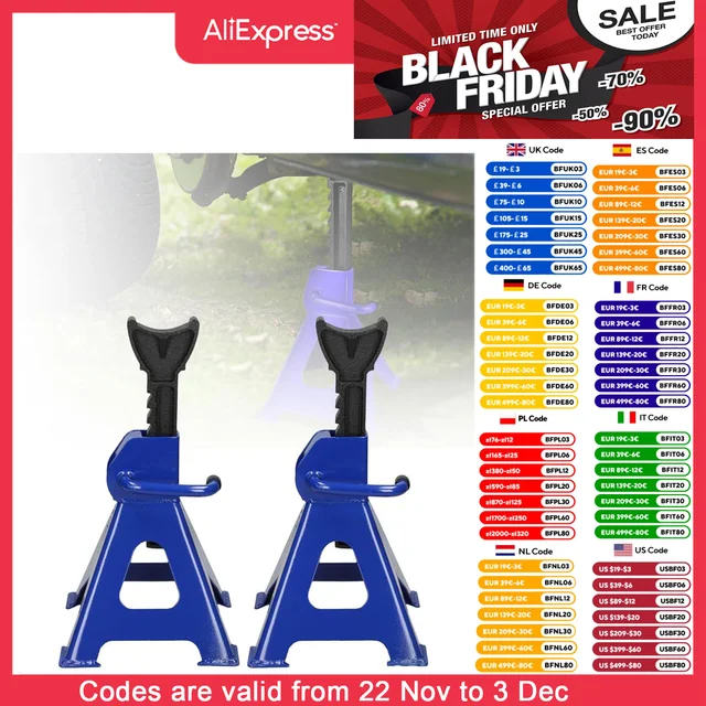 DayPlus 2x 3 Ton Heavy Duty Axle Stand Steel Adjustable Axle Jack Holding Stands for Car Van Lifting Tool Emergency,29-43cm