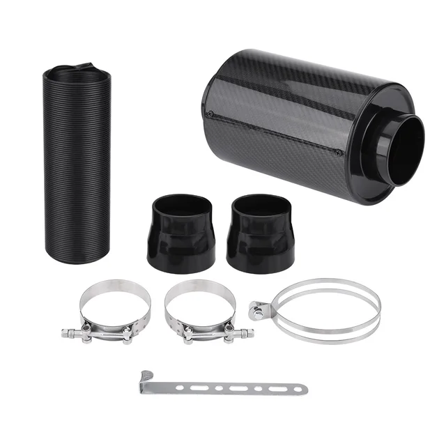76mm 3″ Universal Carbon Fiber Induction Filter Box Cold Air Intake System W/ Intake Hose Cold Air Intake System Intake Hose