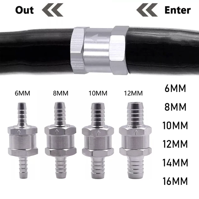 6 8 10 12 14 16mm One-way Non-return Check Valve Fuel Water Gas Air Vacuum Aluminum Alloy Petrol Diesel Water Fuel Line Way