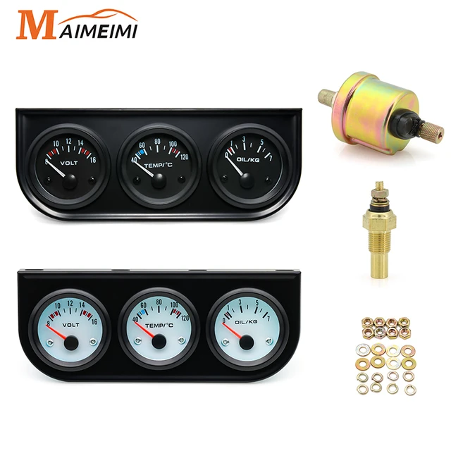 3 in 1 Car Gauge Kit 52mm Voltmeter 8-16V Water Temp 100-250°F 0-7/KG Oil Pressure Gauge With NPT 1/8 Sensor Triple Meter
