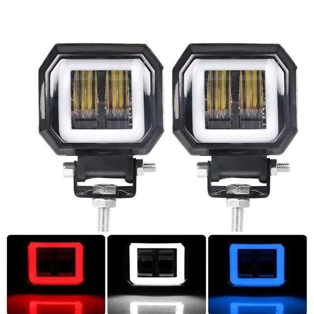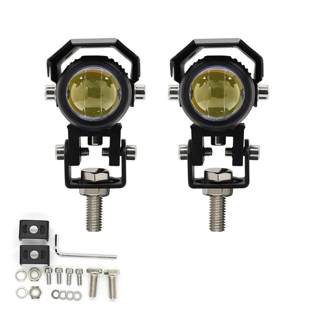 2Pcs Motorcycle Spotlight Mini Driving Light Yellow + White Hi-Lo Beam Led Motorcycle Spot Lights LED Car Spotlights