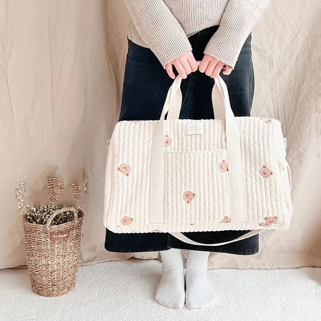 Korea Style Newborn Baby Care Diaper Bag Mummy Shoulder Bag Embroidery Quilted Stroller Diaper Storage Organizer Large Handbags