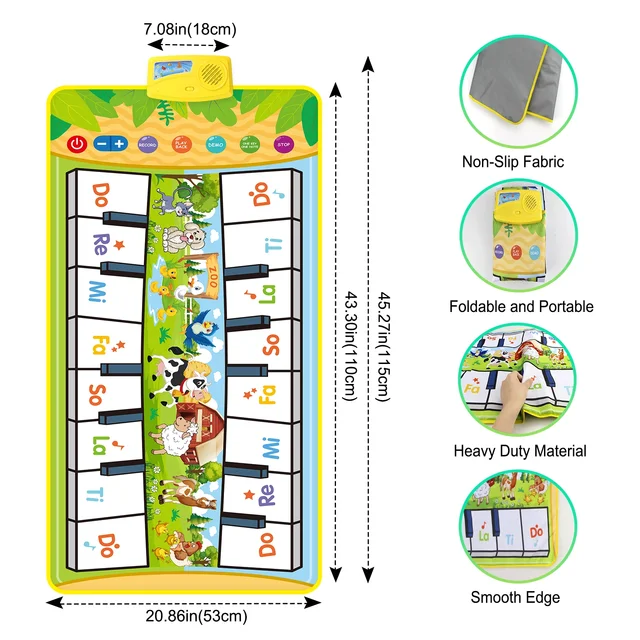 Musical Piano Mat Toddle Mat Dance Mat Double Row Floor Piano with 8 Instrument Sound Montessori Educatinal Toys for Kid Gifts