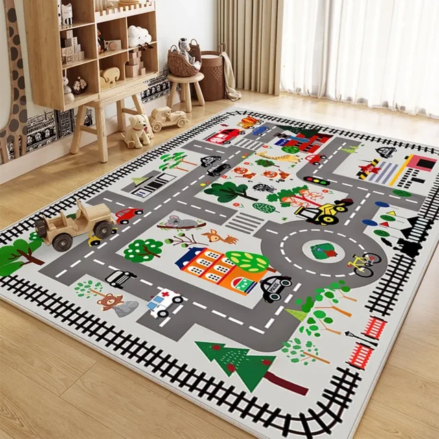 Baby Play Mat Crawling Mat Cartoon Runway Carpet Parking Lot Road Game Mat Home Non-slip and Dirt-resistant Foot Mat Baby Toys