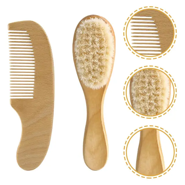 2pcs Baby Comb Set Baby Care Hair Brush Beech Soft Wool Wood Comb Newborn Massager Baby Shower And Gift Baby Hair Soothing