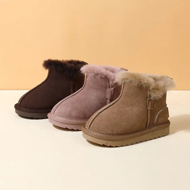 GT-CECD New Winter Children Snow Boots Genuine Leather Girls Boots Warm Plush Boy Shoes Fashion Kids Boots Baby Toddler Shoes