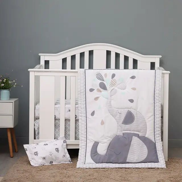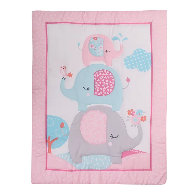 3 pcs Baby Crib Bedding Set for Girls flower elephant hot sale including quilt, crib sheet, crib skirt