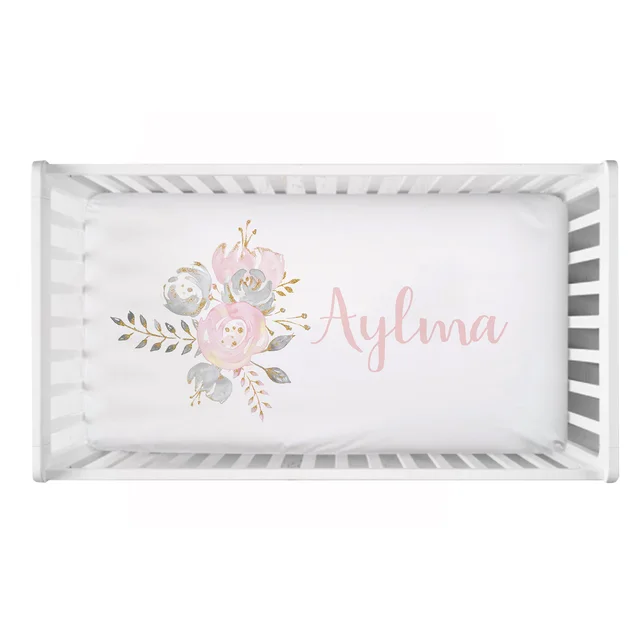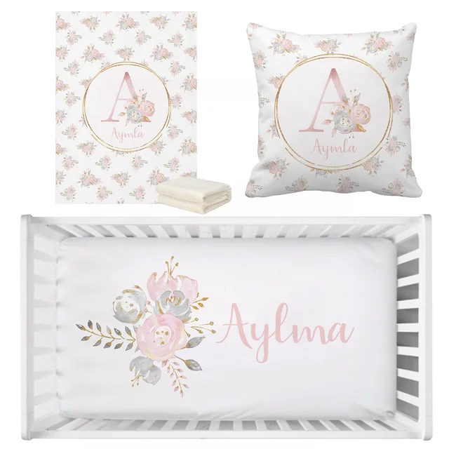 LVYZIHO Personalized Name Blush Gold Floral Bedding Set, Birthday Gift Toddler Gift Bedding Set, Baby Shower Gift Bedding Set