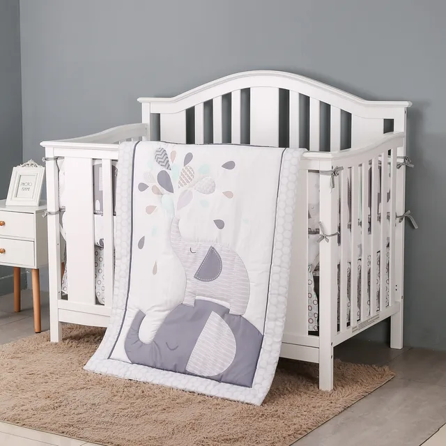 Grey Elephant Crib Bedding Set for Boy 3Pcs Baby Nursery Bedding Sets Neutral (Baby Comforter Fitted Sheet Crib Skirt)