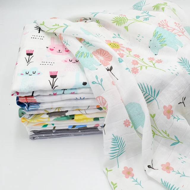 120x110cm Bamboo Cotton Baby Muslin Swaddle Blanket Cute Soft Print Baby Towel Wrap