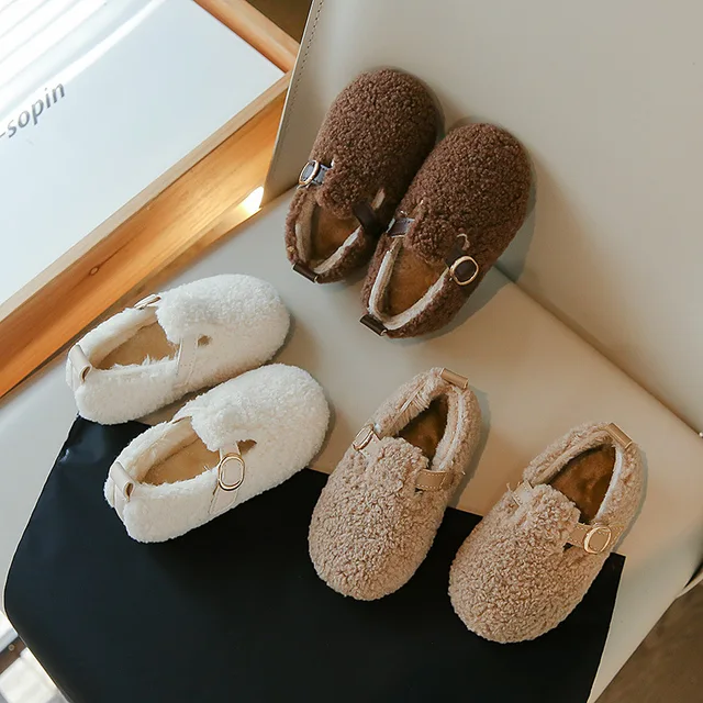 Winter Girls Shoes Lambswool Warm Children Flats Soft Sole Kids Cotton Shoe Casual Loafers Lightweight Non-slip Baby Furry Shoes