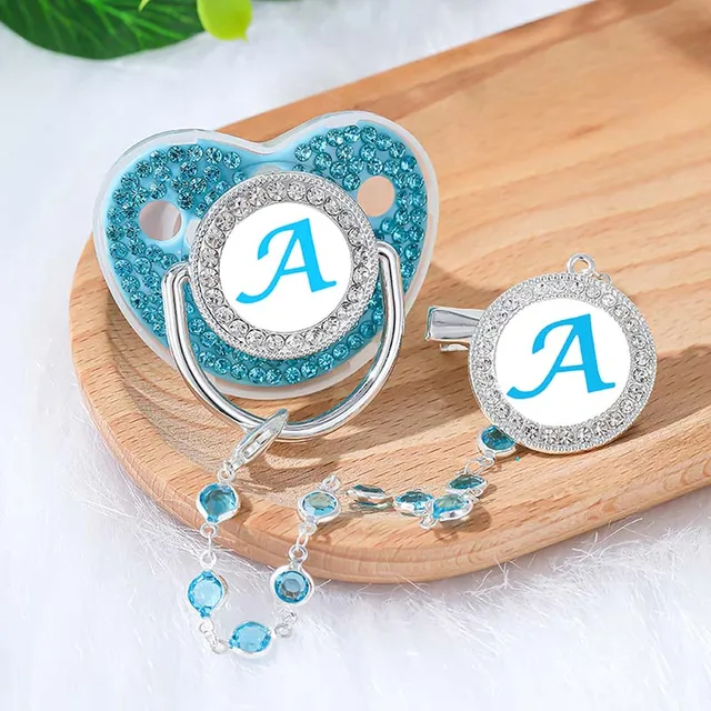 Blue Full Zircon Baby Pacifier Crystal Chain Clip Cover Set Letters Newborn Personalized Luxury Pacifiers Holder Silicone Nipple