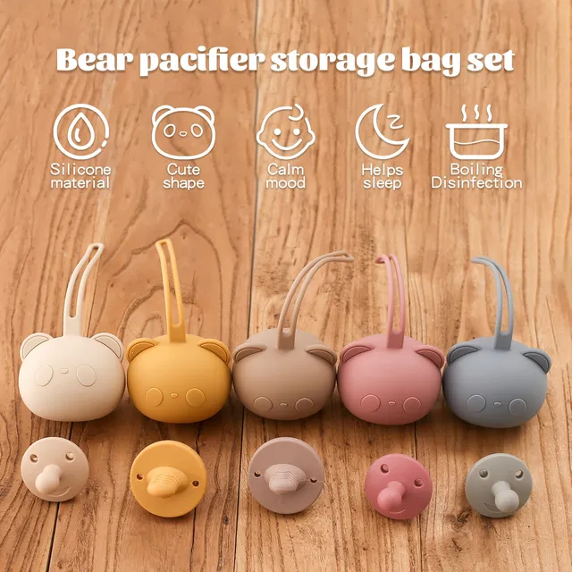New Creative Silicone Bear Pacifier Day Round Head Night Flat Head Storage Box Chain Baby Teether Toys Newborn Pacifier