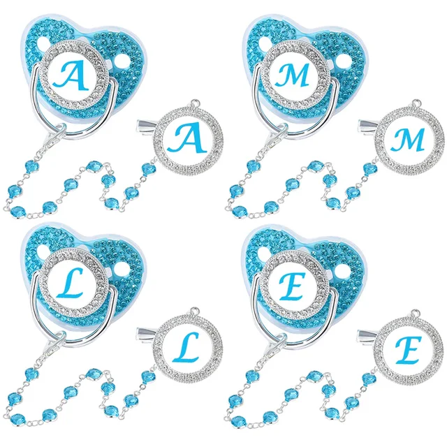 Blue Full Zircon Baby Pacifier Crystal Chain Clip Cover Set Letters Newborn Personalized Luxury Pacifiers Holder Silicone Nipple