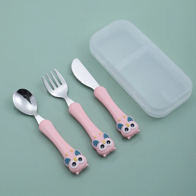 3pcs Children Spoon Forks Box Kids Stainless Steel Kids Cutlery Portable Baby Feeding Utensils Baby Spoons Baby Tableware Set