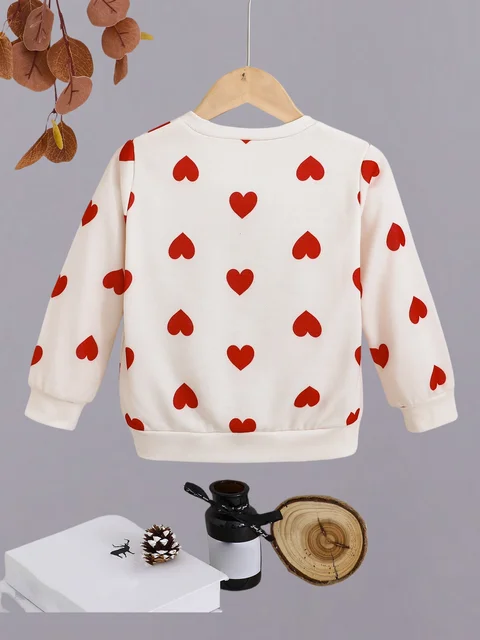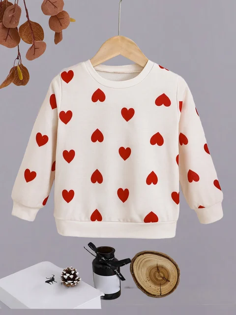 Spring and autumn children’s hoodie girls solid color full print love pullover long sleeve casual comfortable lovely shirt