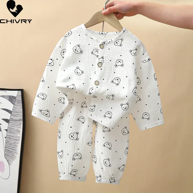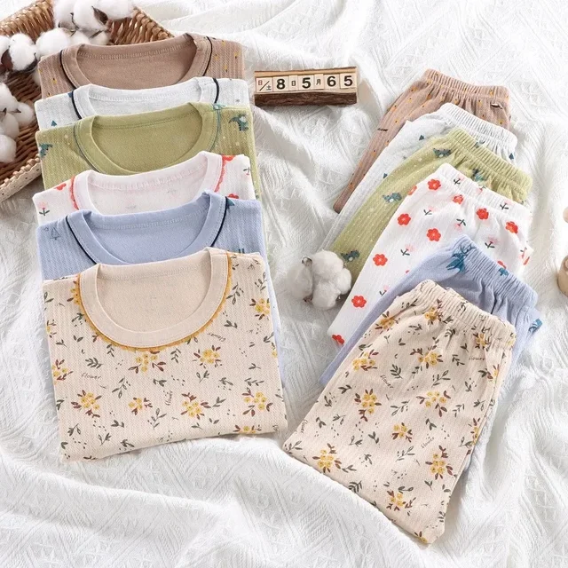 Kids Pajama Set Pure Cotton Cartoon Floral Boys Sleepwear Girls Loungewear Suit Children Sleep Set 1-6Y