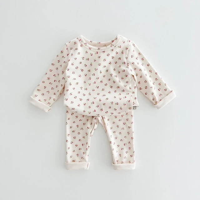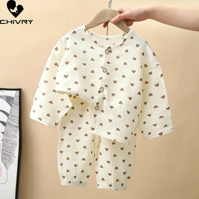 Kids Pajama Set Pure Cotton Cartoon Floral Boys Sleepwear Girls Loungewear Suit Children Sleep Set 1-6Y Soft Sleepwear Outfit