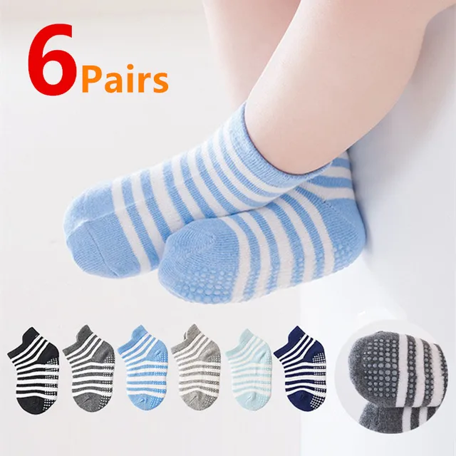 6Pairs/Lot Cotton Kids Anti-Slip Boat Socks Casual Baby Boys Girls Sock Floor Children Socken With Rubber Grips For 0-5Years