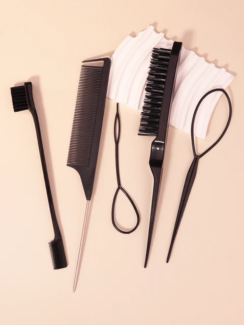 Hair brush and braid set, 5pcs/set, tear comb brush, edge brush, braid tool, hair braiding tool, suitable for women and men