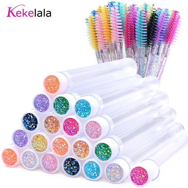 20Pcs Eyelash Brush With 20Pcs Dust-proof Tube Containers Reusable Eye Lash Mascara Wands Replaceable Makeup Applicators Tools