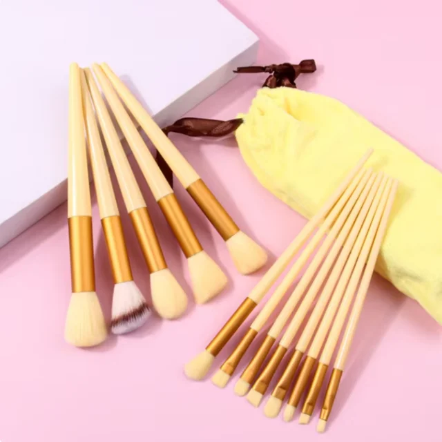 13pcs yellow makeup brush set, flannelette bag, portable eye shadow set, powder brush tool+soft, dry and wet makeup egg