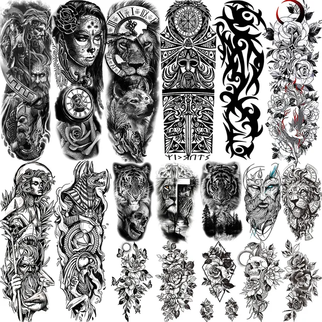 Full Arm Temporary Tattoos Sleeve For Men Women Realistic Fake Tatoos Warrior Lion Tiger Flower Tatoo Sticker Black Totem Maori