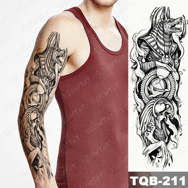 Large Full Arm Sleeve Waterproof Temporary Tattoo Sticker Anubis Egypt Time Eagle Rose Flower Fake Tatoo Body Art Men Women Leg