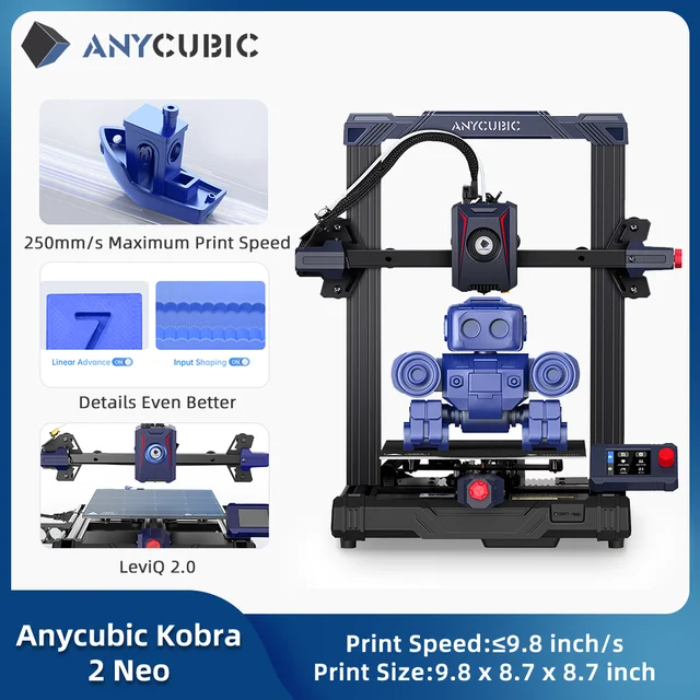 ANYCUBIC Kobra 2 Neo With 9.8in/s Print Speed High Speed FDM 3D Printer LeviQ 2.0 Auto-leveling 3D Printing