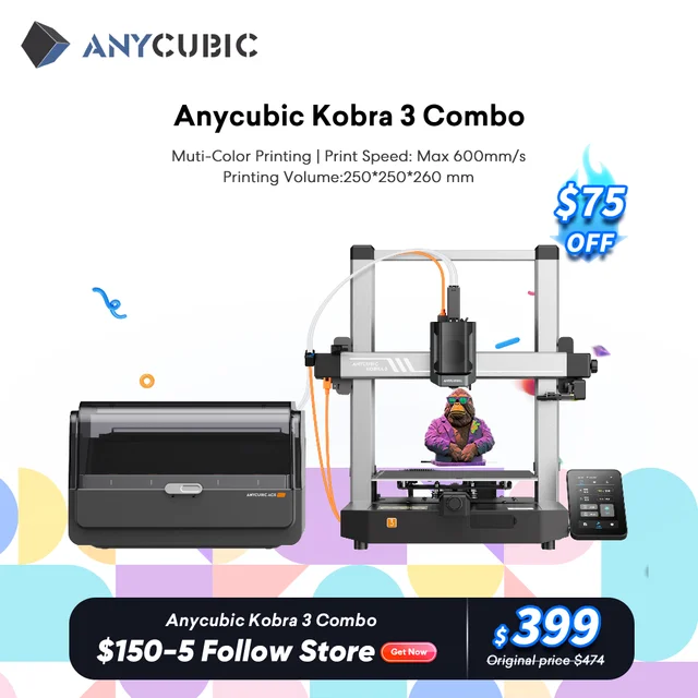 ANYCUBIC Kobra 3 Combo Multi-Color FDM 3D Printer With Max 600mm/s Printing Speed Build Size 250x250x260mm Print in 4 to 8 Color