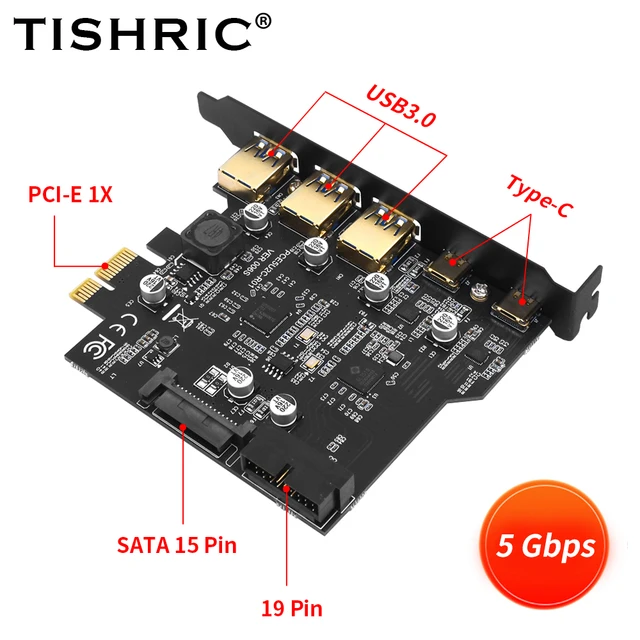 TISHRIC PCI-E 1X To 2 ports Type-c 3ports usb3.0 Expansion Adapter Board PCI Controller Add On Cards with PCIE 1/4/8/16X card