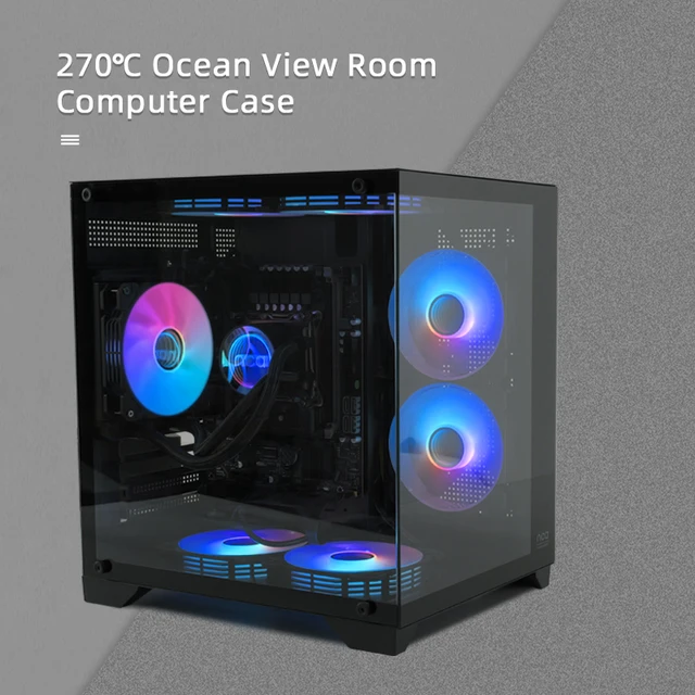 Aigo 275P PC Case Sea View Room Gaming Computer Desktop M-ATX ITX Motherboard Double-Sided Tempered Glass PC Gamer Cabinet