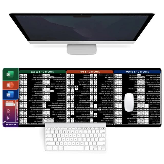 Shortcut Key Mouse Pad Desk Pad EXCEL/PPT/WORD Shortcut Key 8.3X10.2inch Keyboard Mouse Pad, Living Room Bedroom 3D Gaming Mouse