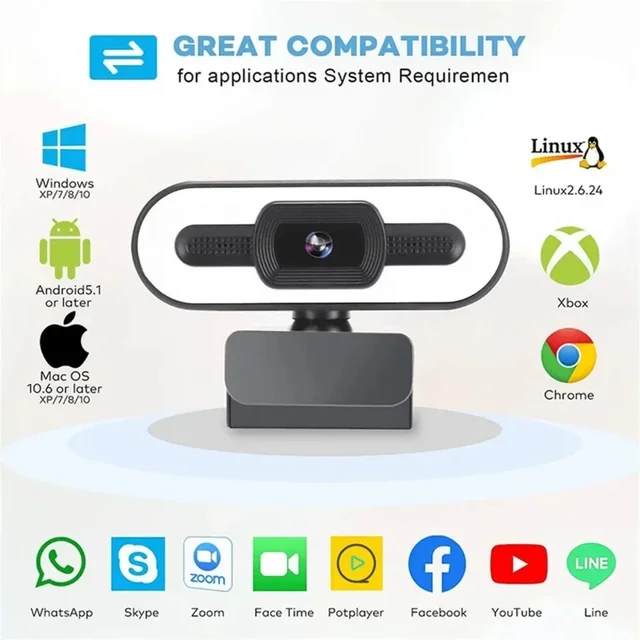 Portable Full HD 1080P 2K 4K Webcam PC Laptop Auto Focus Webcam Live Streaming Flexible with Microphone Live Broadcast withLight