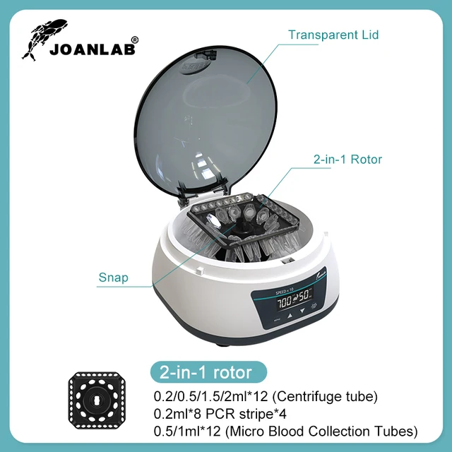 JOANLAB PCR Centrifuge Machine Laboratory Digital High Speed Plasma Centrifuge 12000RPM 0.2/0.5/1.5/2ml Centrifuge Tube MC-12Pro