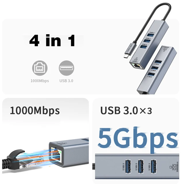 USB C HUB USB-C USB-A Multiport Adapter Type C USB 3.0 Data Transfer Gigabit Ethernet RJ45 Docking Station for MacBook Pro