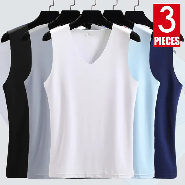3Pieces/Lot Seamless Sleeveless Undershirt Tank Top Men Fitness Shirts Mens Bodybuilding Workout Vest Factory Outlet V Neck