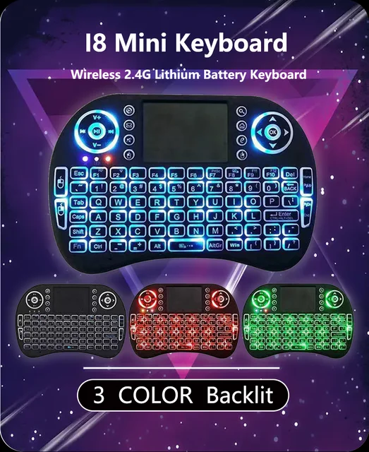 I8 Mini Keyboard Wireless 2.4G 3 COLOR Backlit English Air Mouse Remote Touchpad For Android TV Box PC