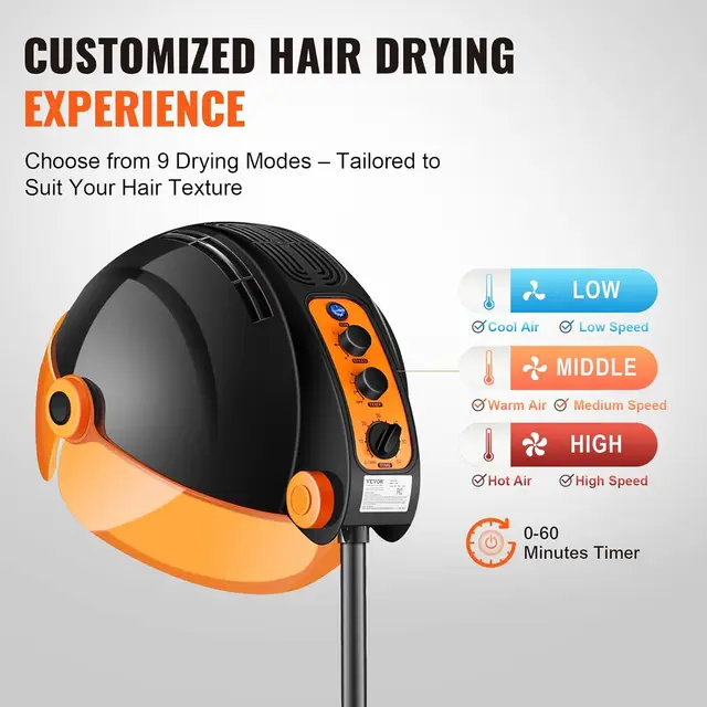 Ionic Hooded Hair Dryer with Variable Speed & Temperature Adjustment, 1875W, Sit Under Hair Dryer with Timer for Beauty Sa