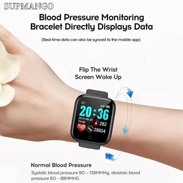 For Android IOS Smart Bracelet Women Smartwatch Men Heart Rate Blood Oxygen Waterproof Sport Smart Band Watch For Ladies +Gift