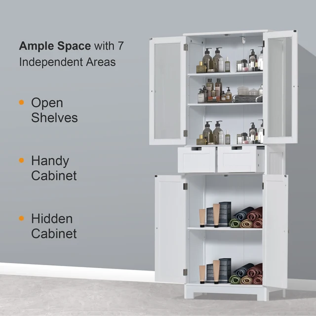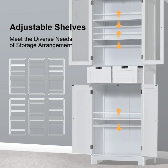 Bathroom Storage Tall Cabinet with Doors, 67″ Freestanding Storage Cabinet with Doors and Adjustable Shelf for Kitchen Bathroom