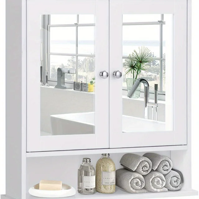 Bathroom Wall Mounted Cabinet Shelf Bath Kitchen Mirror Door Storage Organizer