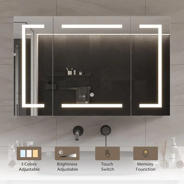 Medicine Cabinets with Mirrors and Led Lights 39.4”x23.6” Wall Bathroom Mirror with Storage and Charging Station Wall Mounted