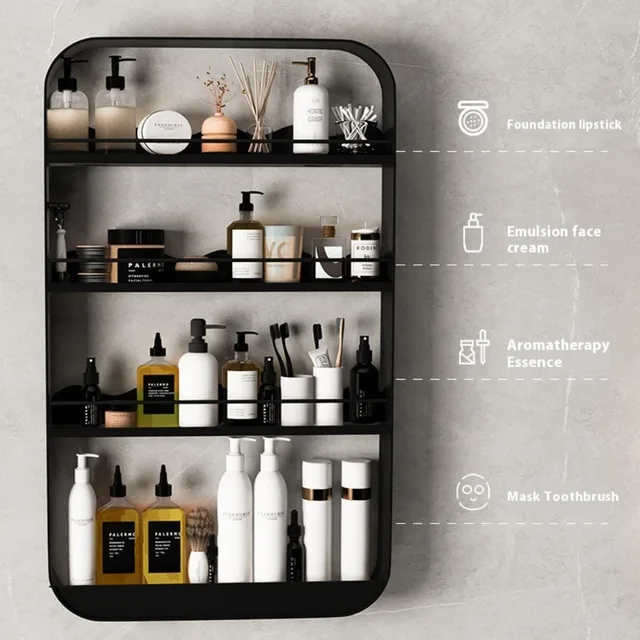 Wall Mounted Multilayer Storage Cabinet Bathroom Toiletries Cosmetics Storage Rack Large Capacity Kitchen Seasoning Storage Rack