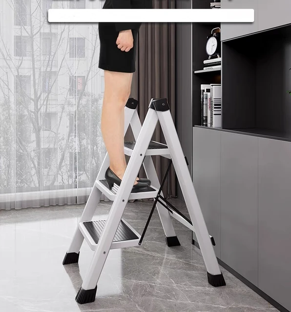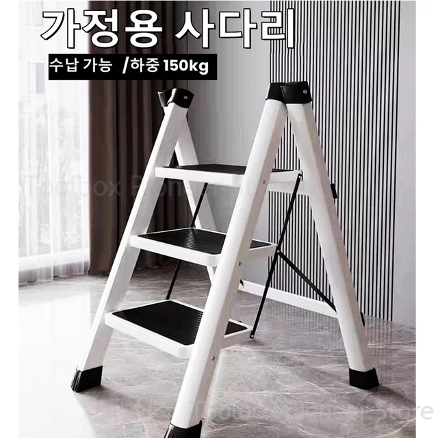 White Folding Ladder Chair Carbon Steel High Stools Strong Load-bearing Thickened Kitchen Step Ladder Stool