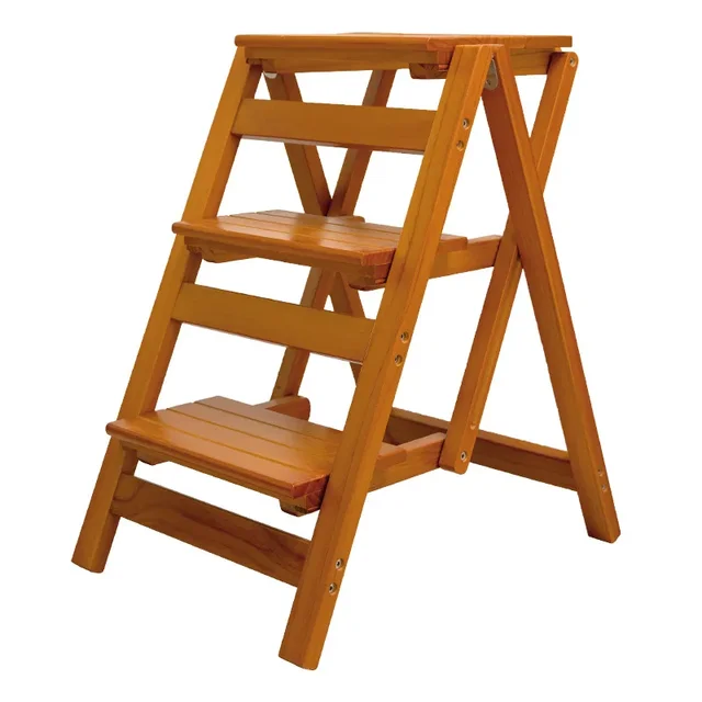 Solid Wood Ladder Installation-free Household Folding Stool Multi-functional Three-step Climbing Step Stool Stair Chair