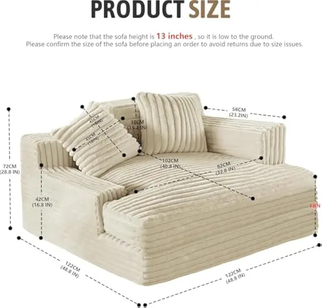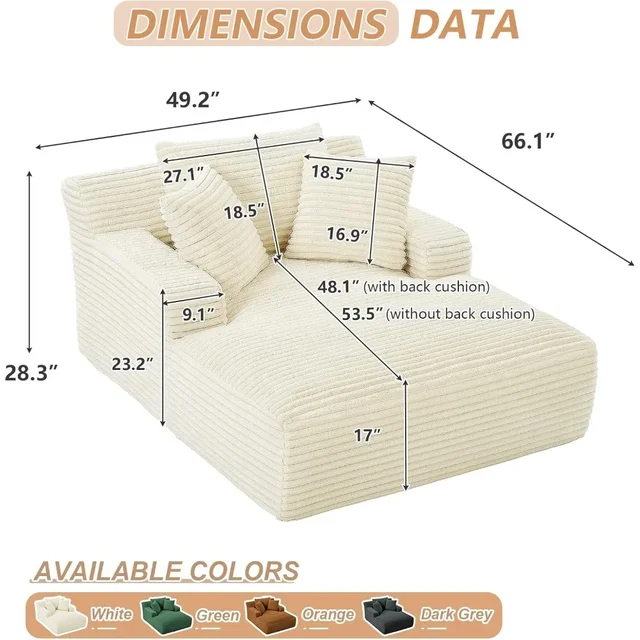 Oversized Chaise Lounge Chair,Corduroy Fabric Single Sofa Chair,Upholstered Lounge Chair with Pillows Suitable for bedrooms