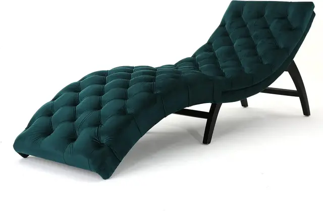 Knight Home Garret Tufted Velvet Chaise Lounge, Teal / Dark Brown